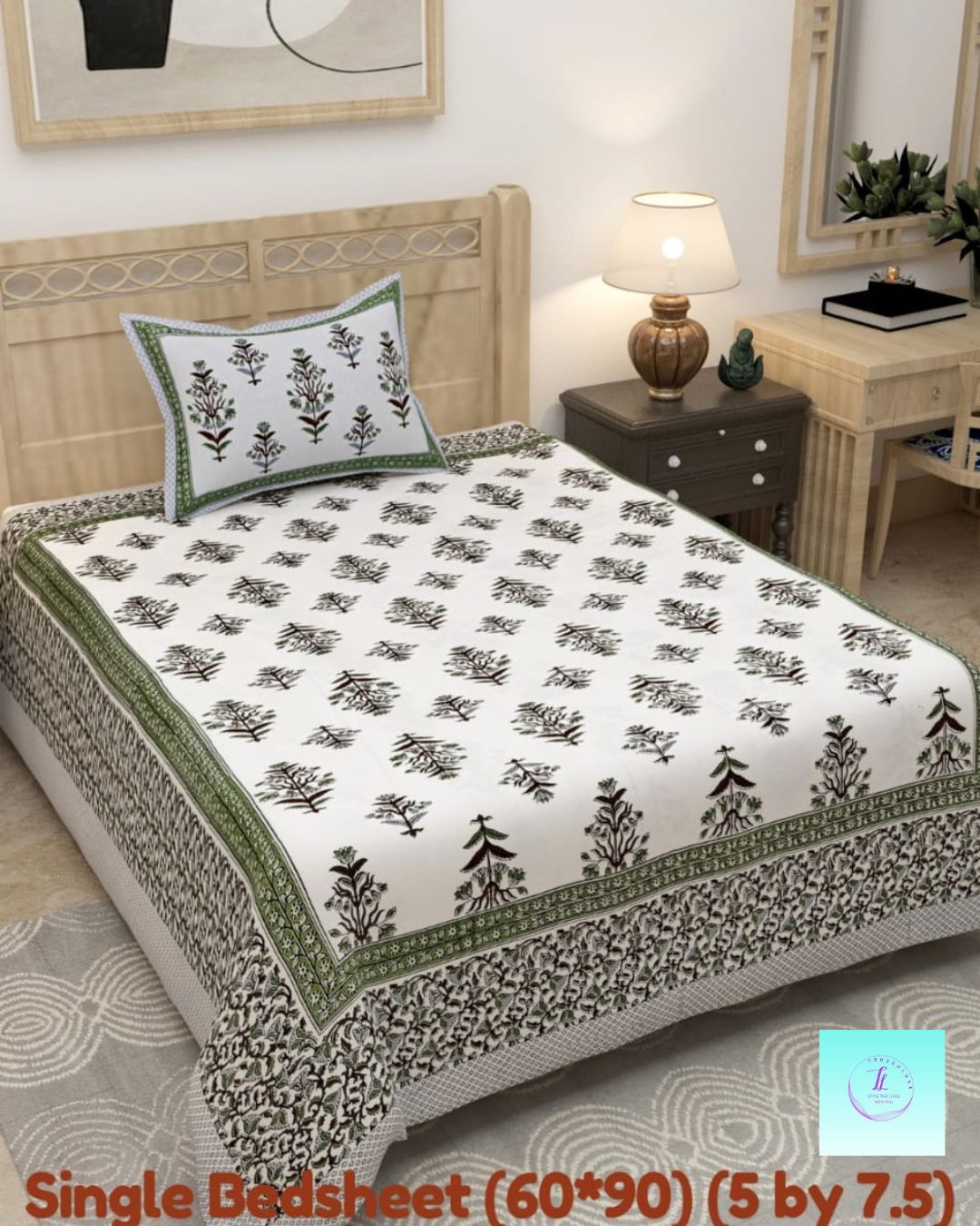 Splendor Jaipuri Pure Cotton Single Bedsheet with 1 Pillow Cover (60×90 inches)